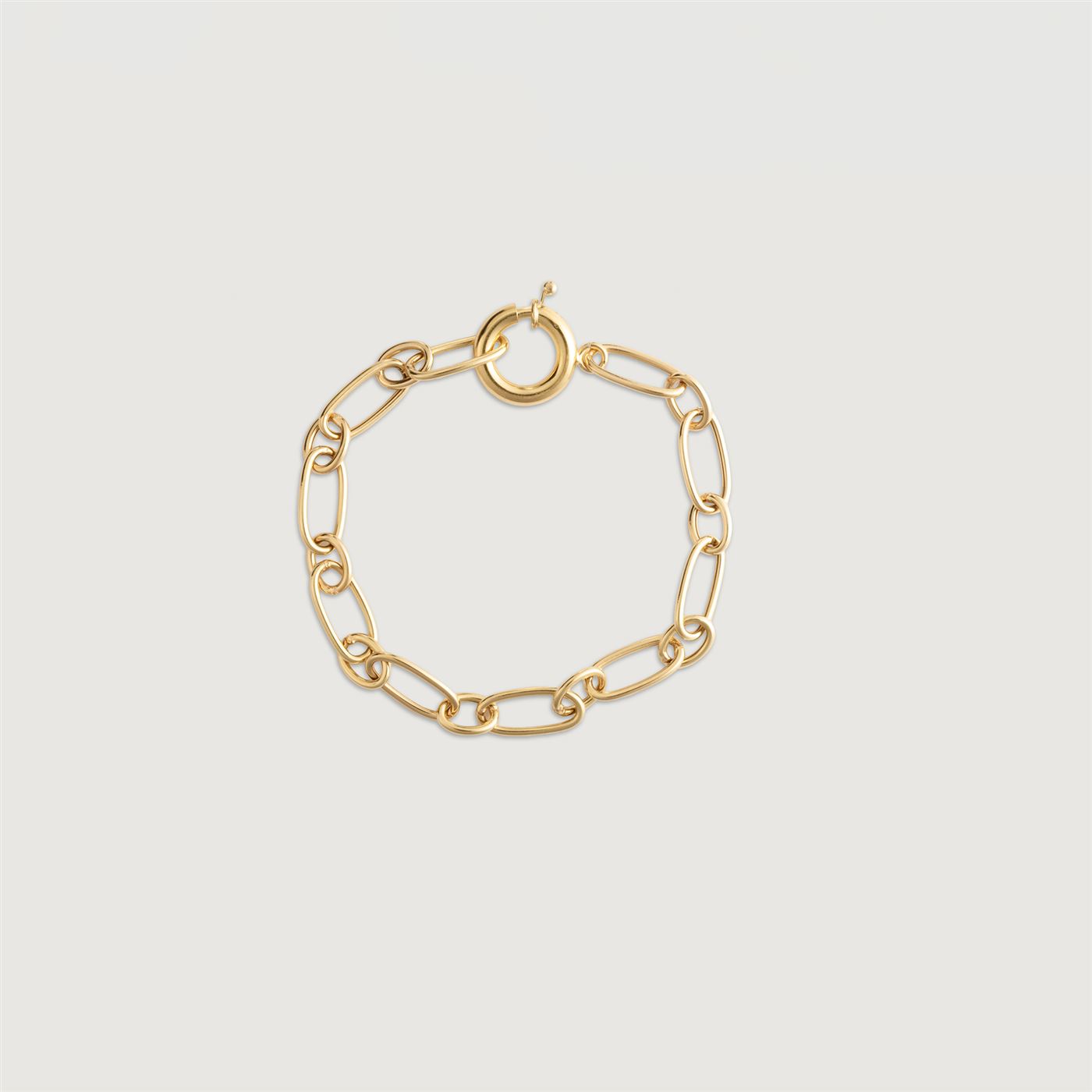 دستبند طلا هرمس ۱ یکی از دستبندهای ساده و مینیمال گالری طلا سنجاق است که در دسته دستبندهای طلا زنجیری قرار می‌گیرد. این دستبند طلا، از حلقه‌های زنجیر نسبتاً درشت و بزرگی طراحی شده است که روی دست بسیار زیبا و جذاب جلوه می‌کند. دستبند طلا هرمس ۱، یک قفل زیبا و خاص دارد که مدل آن با قفل‌های سایر دستبندهای طلا زنجیری متفاوت است.
