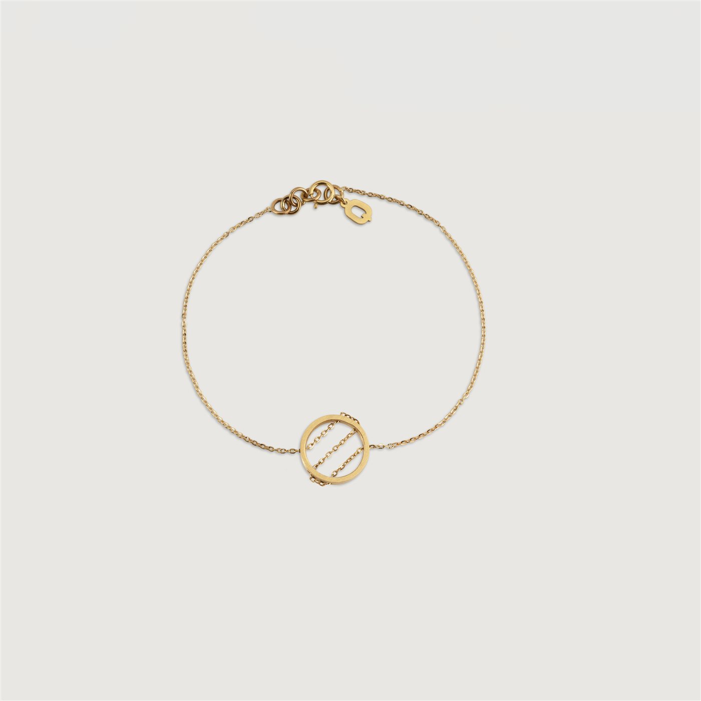 دستبند طلا دایره زنجیر ضربدری، یکی از زیباترین و متفاوتترین دستبندهای گالری سنجاق است که از مدل دستبند زنجیری است. این دستبند طلا، برای درخشش بهترین انتخاب است. طراحی این دستبند طلا از یک دایره تو خالی تشکیل شده که زنجیر آن به شکل ضربدری از وسط دایره عبور کرده است. به طور کلی، طراحی این دستبند طلا مینیمال است و طرحی ساده و همه پسند دارد.