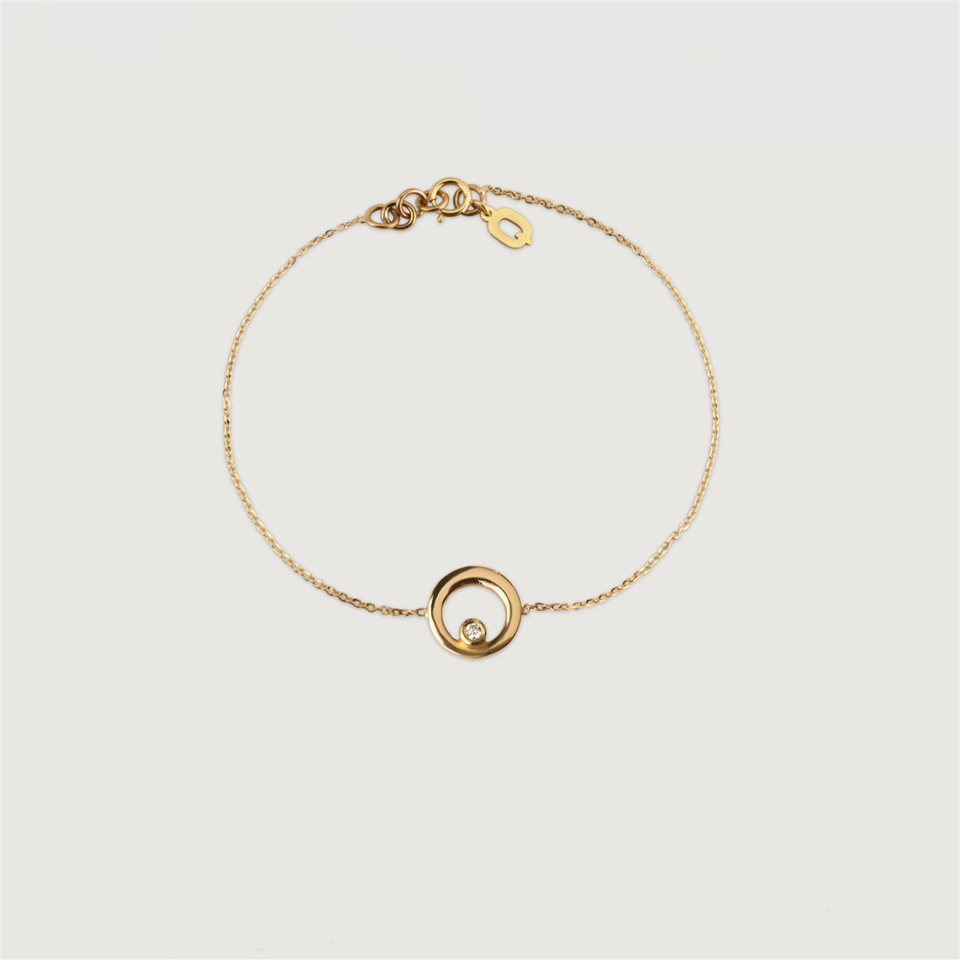 طراحی و مدل این دستبند طلا، زنجیری است و به گونهای طراحی شده است که یک پلاک دایرهای شکل تو خالی در وسط این زنجیر قرار گرفته و درون دایره با یک نگین زیبا و ظریف، درخشان شده است. به طور کلی، این دستبند، یکی از اعضا کالکشن طلا چشم است که از قدیمیترین کالکشنهای طلا گالری سنجاق به شمار میرود.