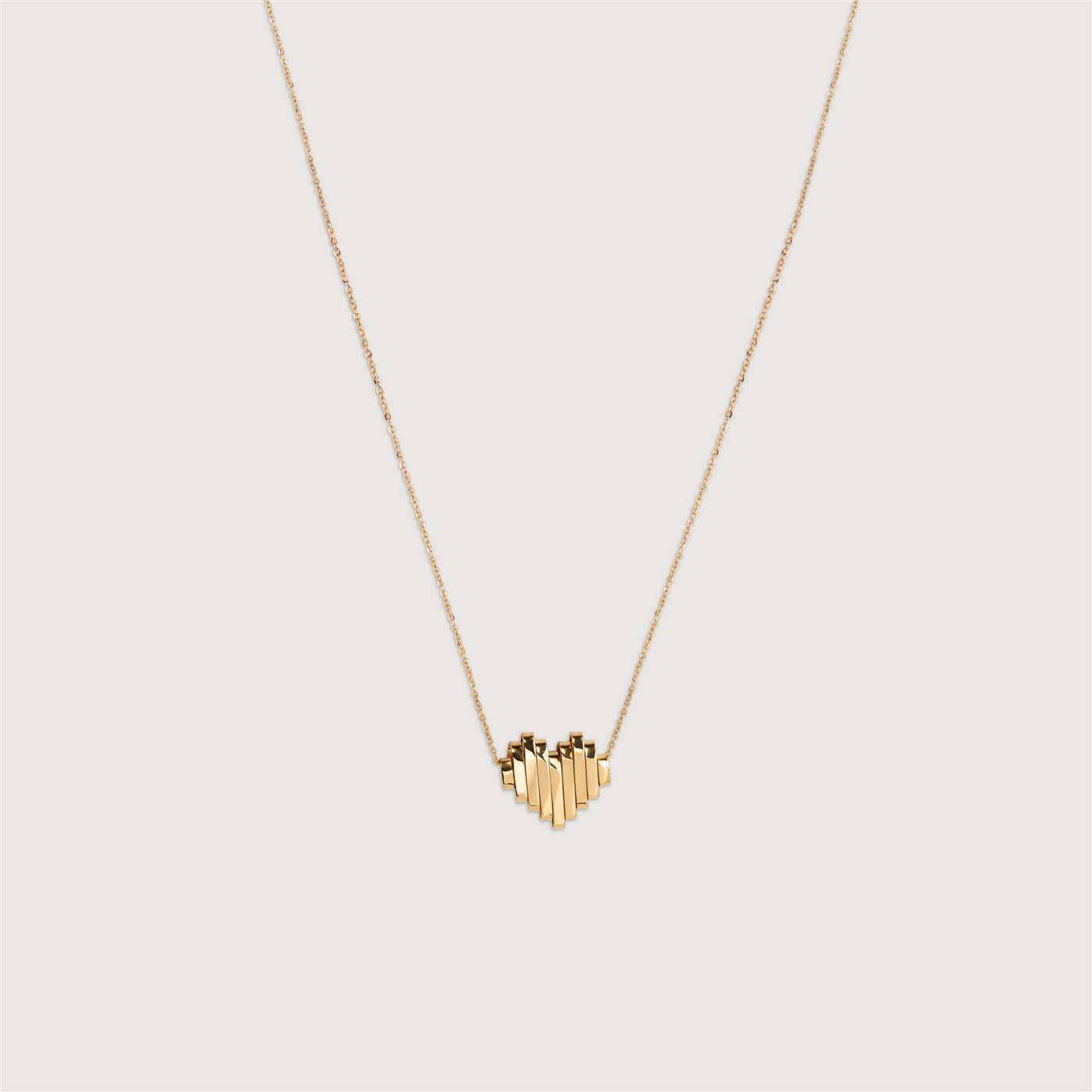 گردنبند طلا قلب فرکانس، از طراحیهای بسیار زیبای گالری طلا سنجاق که طرفداران بسیار زیادی دارد و همیشه در دسته پر فروشترینهای این مجموعه قرار دارد. این گردنبند طلا، یکی از اعضاء کالکشن طلا قلب فرکانس بوده که طراحی اصلی آن از فرکانس، کالکشن محبوب سنجاق، بوده و به شکل قلب درآمده است.
