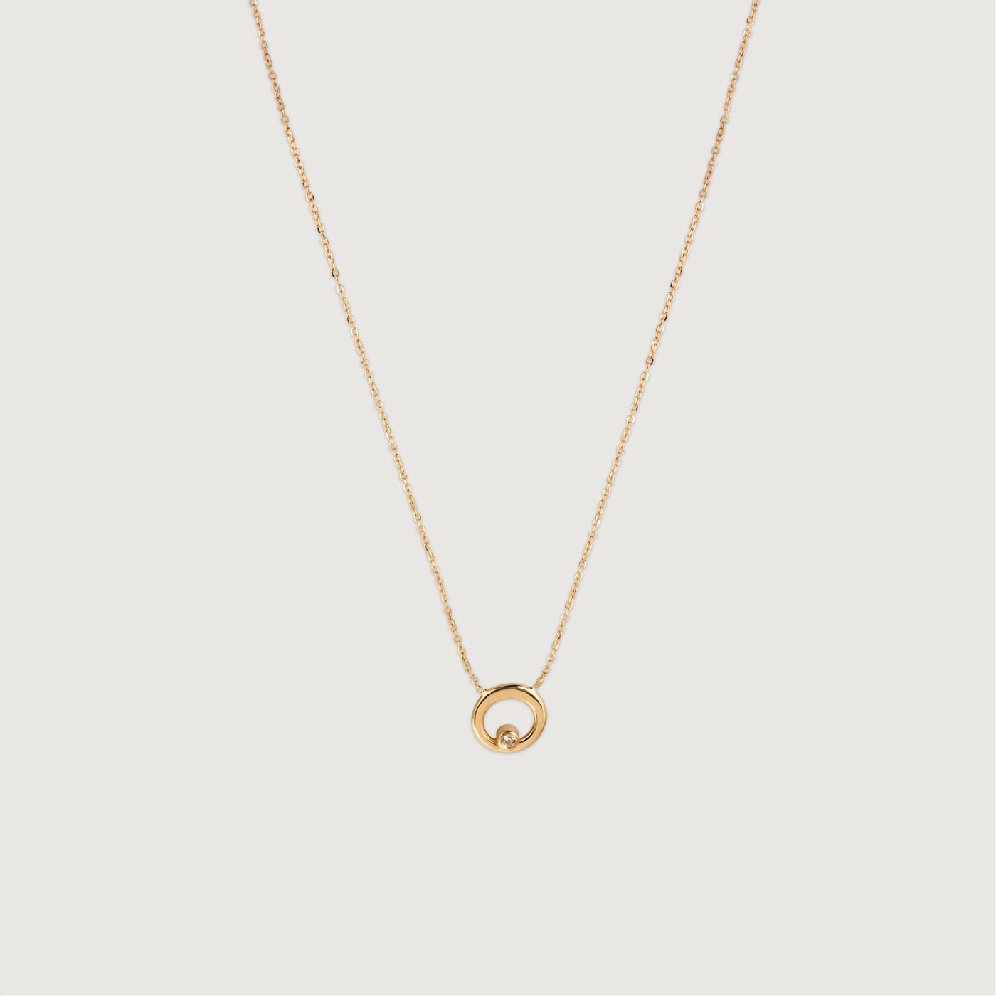 این گردنبند طلا، از یک دایره تو خالی تشکیل شده که در قسمتی از آن یک نگین بسیار ظریف و درخشان قرار گرفته است. شاید برایتان جالب باشد که بدانید چرا نام این گردنبند طلا، چشم است؟ به دلیل شباهتی که طراحی این گردنبند به چشم دارد، نام این گردنبند را «چشم» گذاشتهاند. به طور کلی، رویکرد گالری طلا سنجاق در نام گذاری محصولاتش بسیار خلاقانه بوده است و این گالری تلاش میکند که با نامهای ساده و روان، محصولاتش را به راحتی در ذهن همراهانش ذخیره کند!