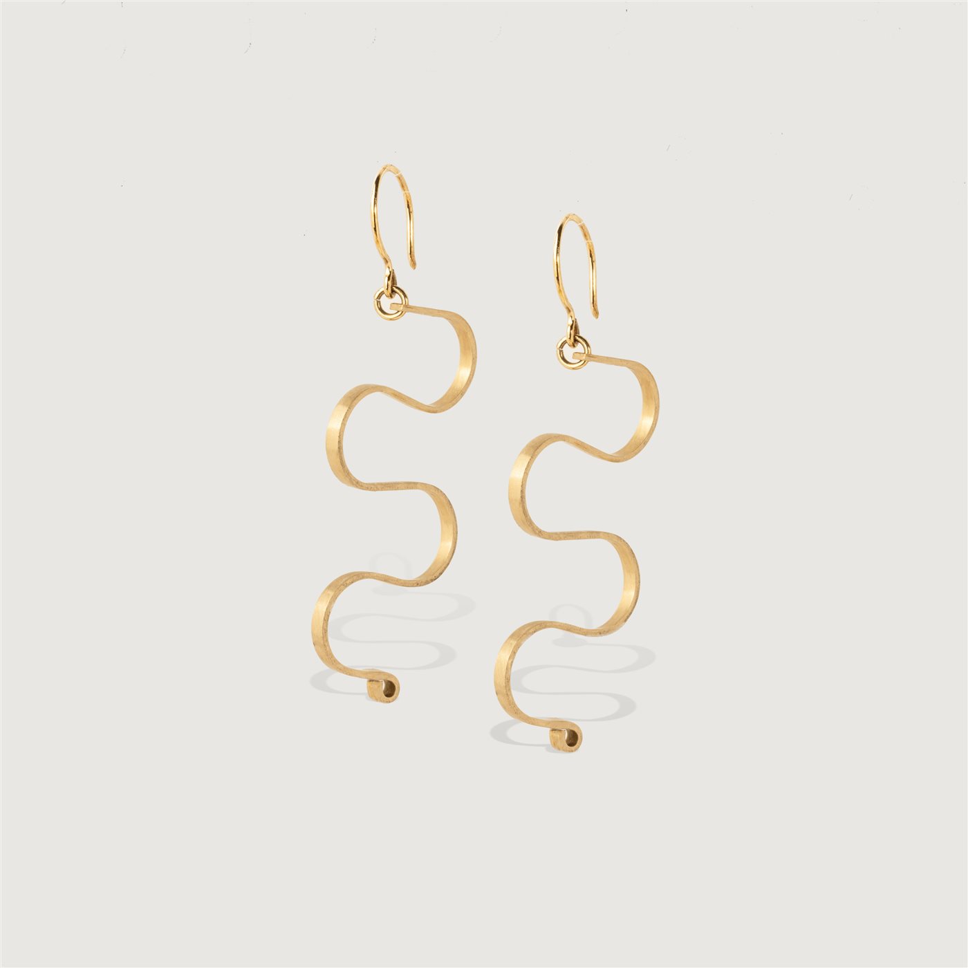 گوشواره طلا چالوس، از قدیمیترین و زیباترین گوشوارههای گالری سنجاق که یکی از اعضا کالکشن محبوب چالوس است. این گوشواره طلا، طراحی خاص و زیبایی دارد که مدل آویزان محسوب میشود و مثل طراحی چالوس پیچ و خم زیبایی دارد.